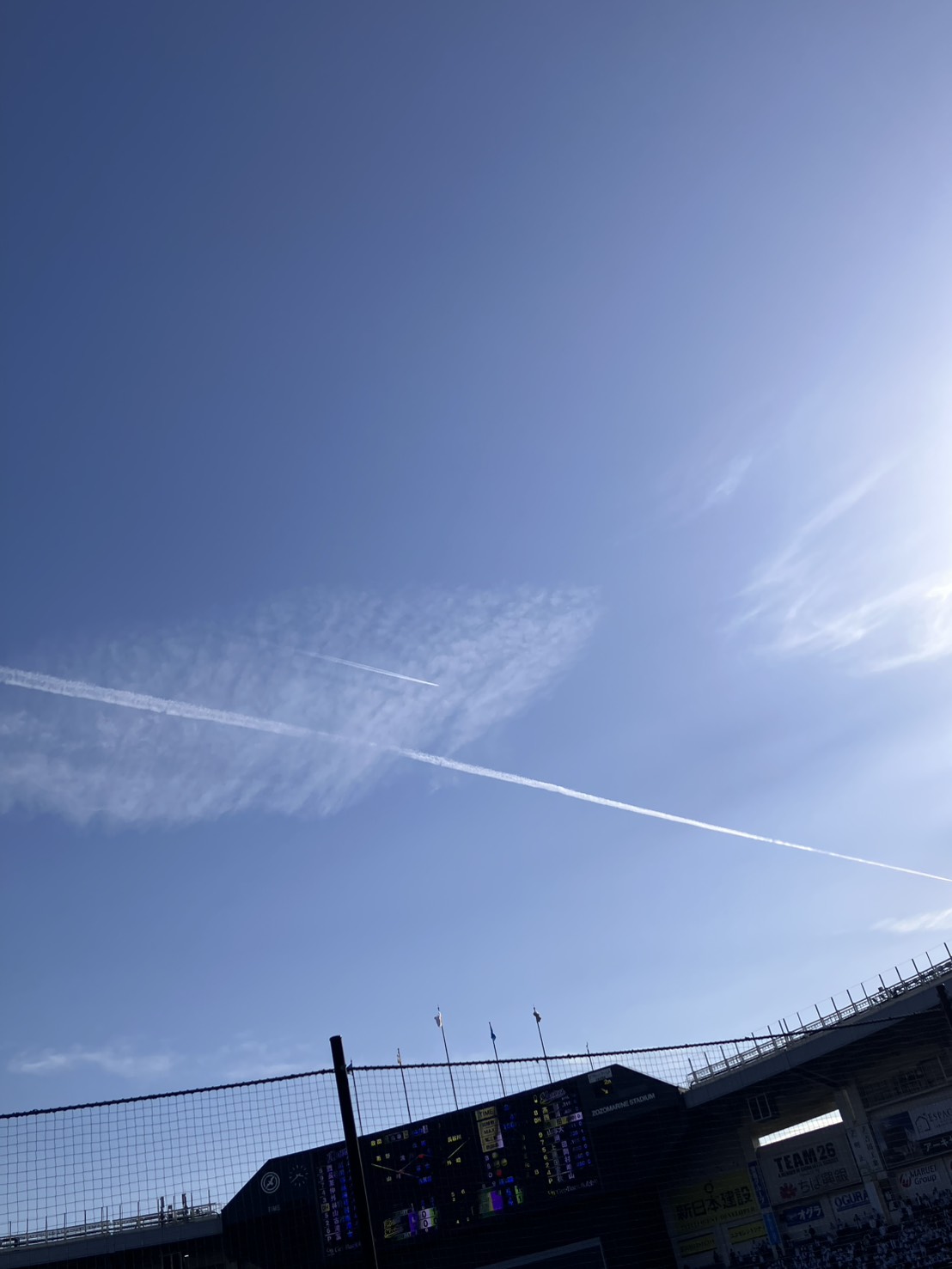 天気も良く、少し暑いくらいの中で観戦中、とても綺麗な飛行機曇が(^^♪ 会場の皆様も、空を見上げたり写真を撮ったりしてました✨